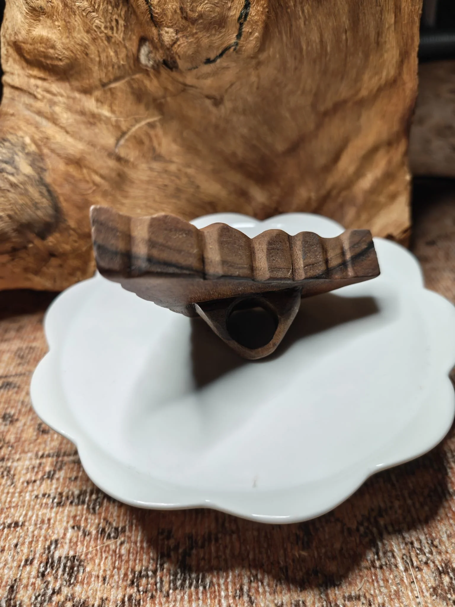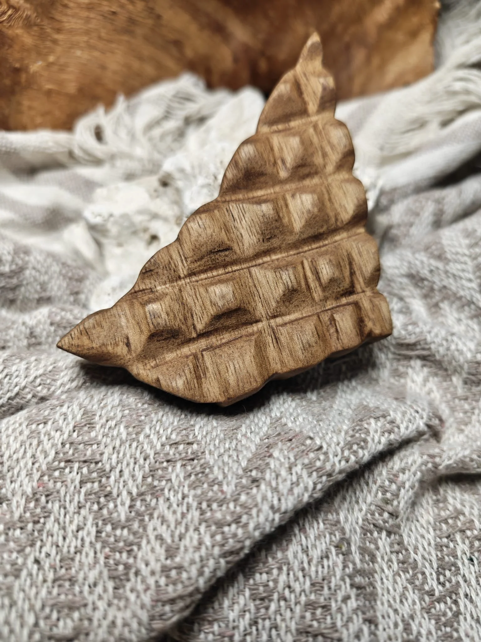 Ajunse la mine în atelier, primele sculpturi făcute din ea fac baza unei lămpi de podea. Acele fețe stilizate au produs și ele câteva deșeuri de nuc pe care le-am păstrat. Apoi am făcut o oglindă, cu o ramă organică și fluidă, care s-a vândut imediat. Apoi niște prieteni și-au dorit o consolă pentru canapea, unde să își pună o carte, un pahar. Cam dintr-o ușă întreagă mi-a ieșit o piesă utilă și a mai rămas ca rest zona găurită pentru mânere și încuietoarea, așa că le-am pus deoparte și pe ele.