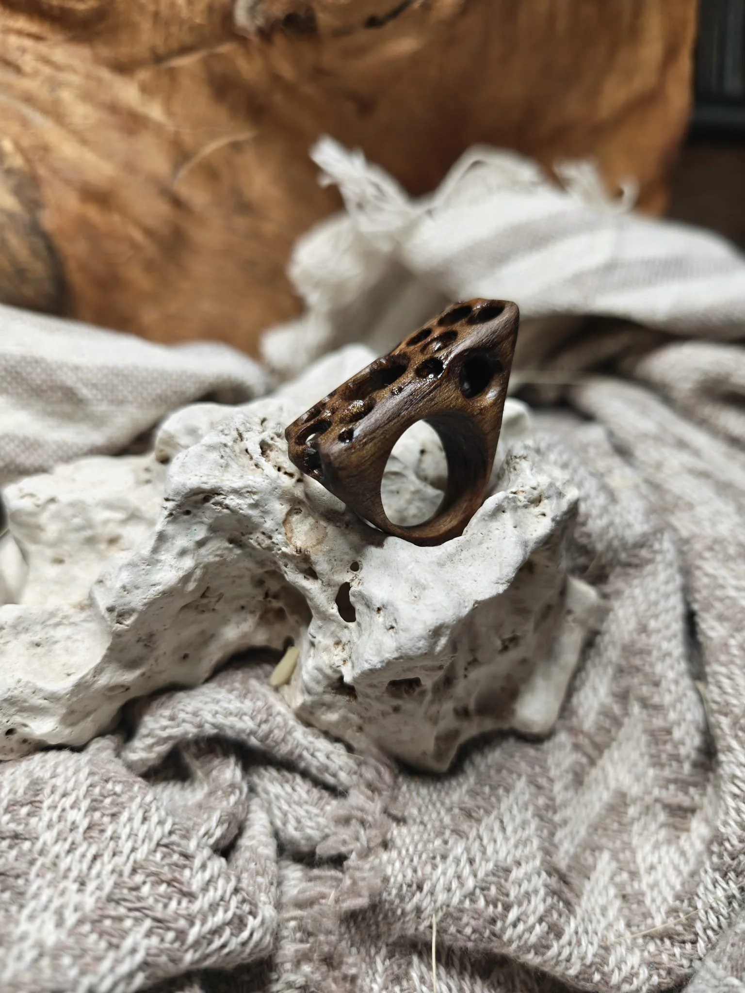 Inel sculptural nuc